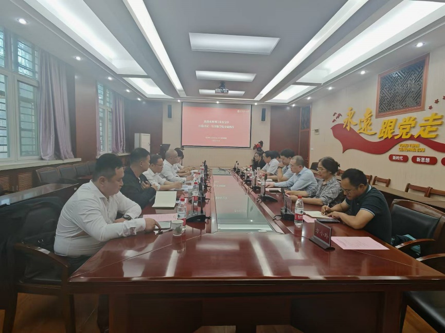 吴斌院长对各位嘉宾的到访表示热烈欢迎,并对av影片 的历史发展及学科特色进行了介绍。荆门市东宝区区委书记江稳介绍了东宝区的建设和全链条绿色建材产业园的特色布局及创新发展,并诚邀av影片 领导参加10月27日在荆门市举办的“城市更新绿色低碳建设交流会”,区常委代祖全对这次交流会的筹备情况进行了介绍,并再次表达了与我校在荆门共建绿色低碳建筑建材链创研究院的诚意。罗忆副院长回顾了9月赴荆门考察的过程,并与双方代表就绿色低碳建筑建材链创研究院的共建模式,管理机制及合作方式等问题进行了讨论。区常委伍赟以“双向奔赴”对双方的互访及合作诚意做了精彩总结,双方合影留念。