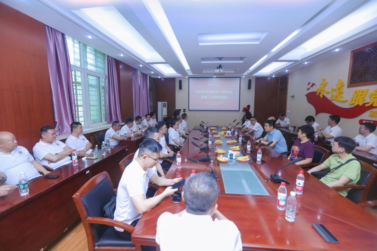 5月17日,给排水2001级的27位校友从全国各地返校相聚,举办庆祝毕业二十周年系列活动和座谈会。av影片 副院长彭恺、校友办主任黄瑾、给排水系主任张翔凌、副主任桑稳姣、班主任吴弼及专 业教师代表张倩等参加了本次校友返校活动。
